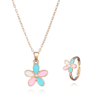 Gold-Plated Zinc Alloy Imitation Jewelry Sets Cute Flower Pendant Necklace & Earrings Children's Gift for Parties